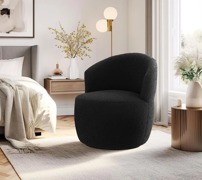 כורסא מעוצבת יוקרתית לבית דגם אדיסון בד בוקלה צבע שחור