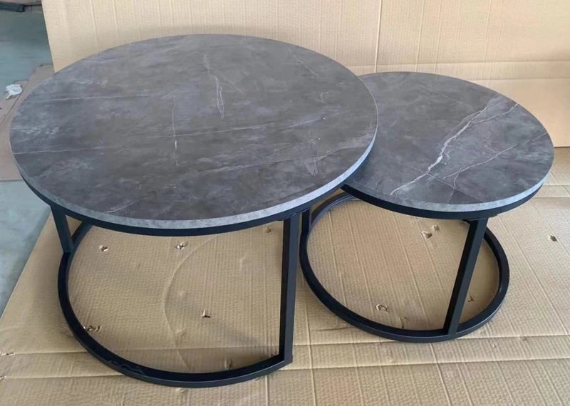 זוג שולחנות לסלון עגול דגם רויאל צבע אפור